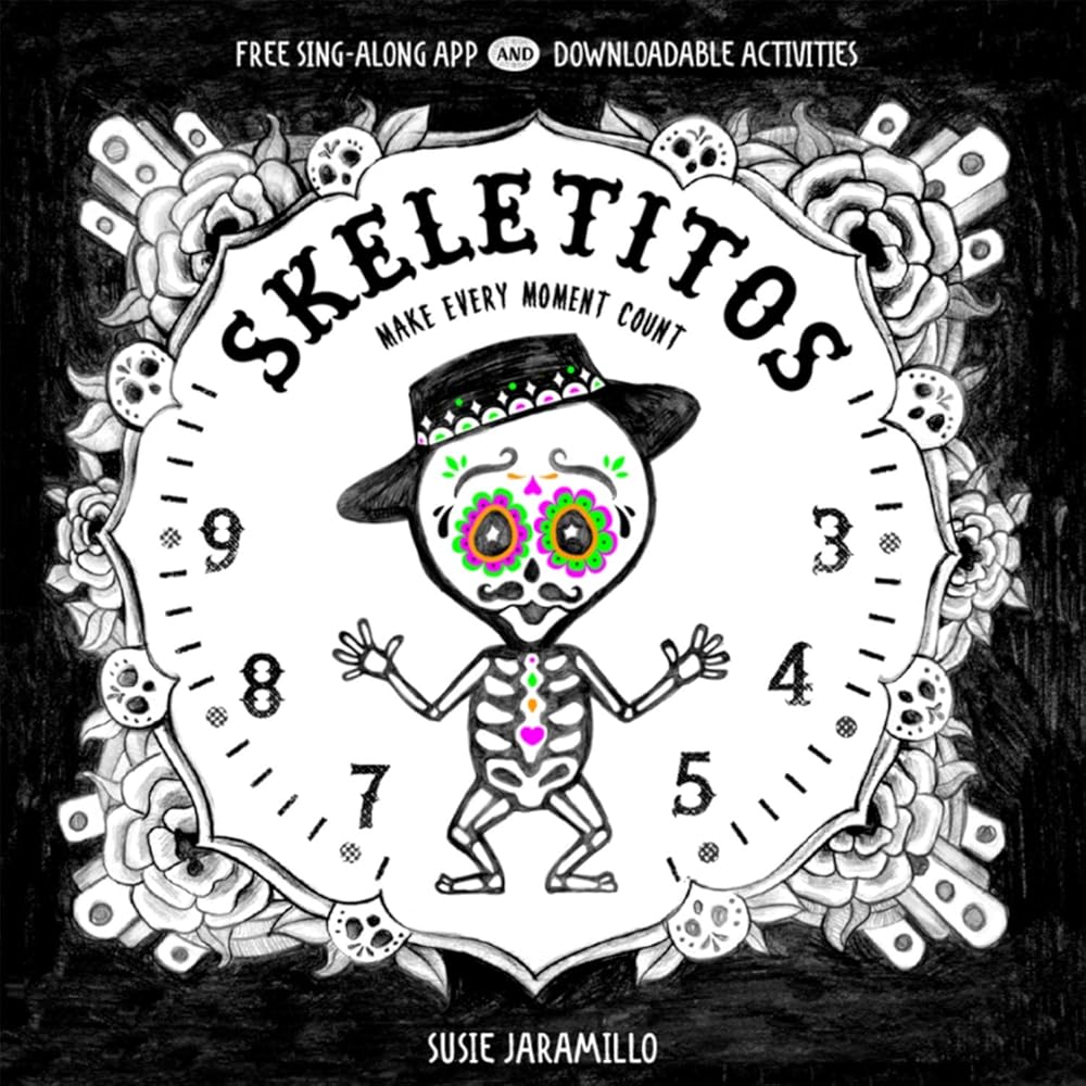Tomba-la-ca, tomba-la-ca, tomba-la! Come enter into the creepy-crawly, mischievous and mysterious world of Skeletitos, where being on the other side of life is never an excuse for not having a good time! Inspired by the beautiful Mexican calavera art by Jose Guadalupe Posada, Skeletitos is a celebration of the ordinary and the completely extraordinary. Tap your fingers or stomp your feet, no need to sit still. After all, before you know it, our time will be up! Our Day of the Dead themed tales carry a comedic twist for kids, encouraging them to be wary, conscious, funny and self-aware. The first book in the Skeletitos collection features a moveable clock. Little fingers will be tempted to change the hour along with the story, while learning to count and tell time!
