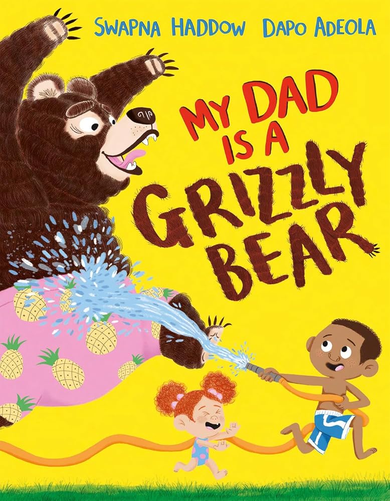In this family, it’s just possible that Dad is a grizzly bear . . . He has fuzzy fur, enormous paws and he loves the outdoors. He sleeps a lot, even at the movies and when he’s awake, he’s always hungry, usually eating up all the honey, what else could Dad be? But sometimes, when it’s scary at night, a lovely big bear hug is just what is needed.