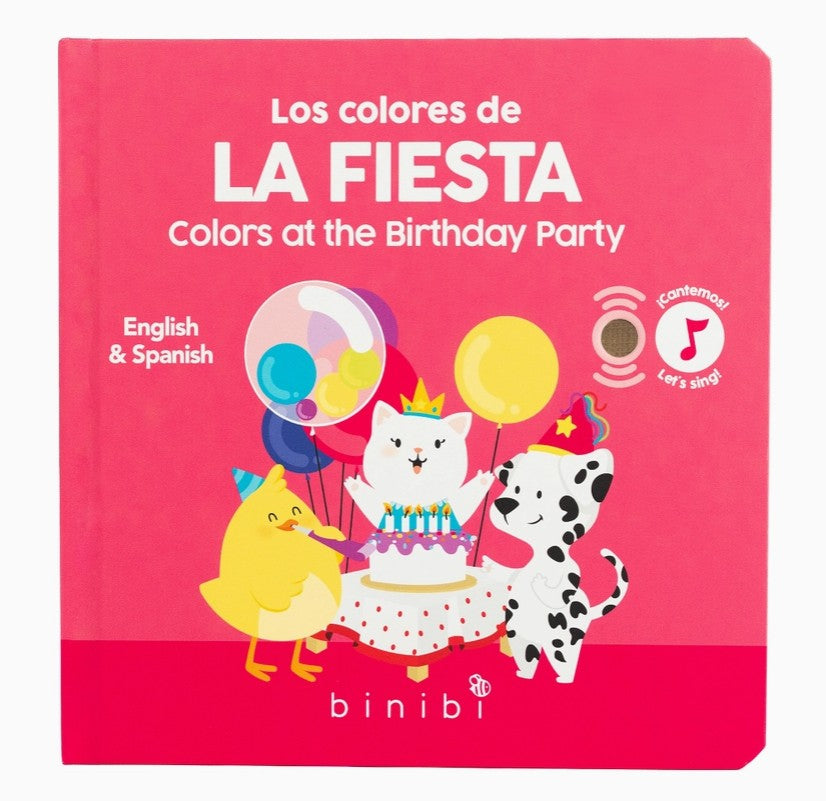 Teach your child Spanish with our newest musical bilingual musical book, Los colores de la fiesta (Colors At The Birthday Party)! Perfect for little hands and curious minds, this new vibrant and interactive book combines a catchy original song, eye-popping illustrations, and an educational theme that takes place in a day-to-day setting to make language learning relatable to everyday life.